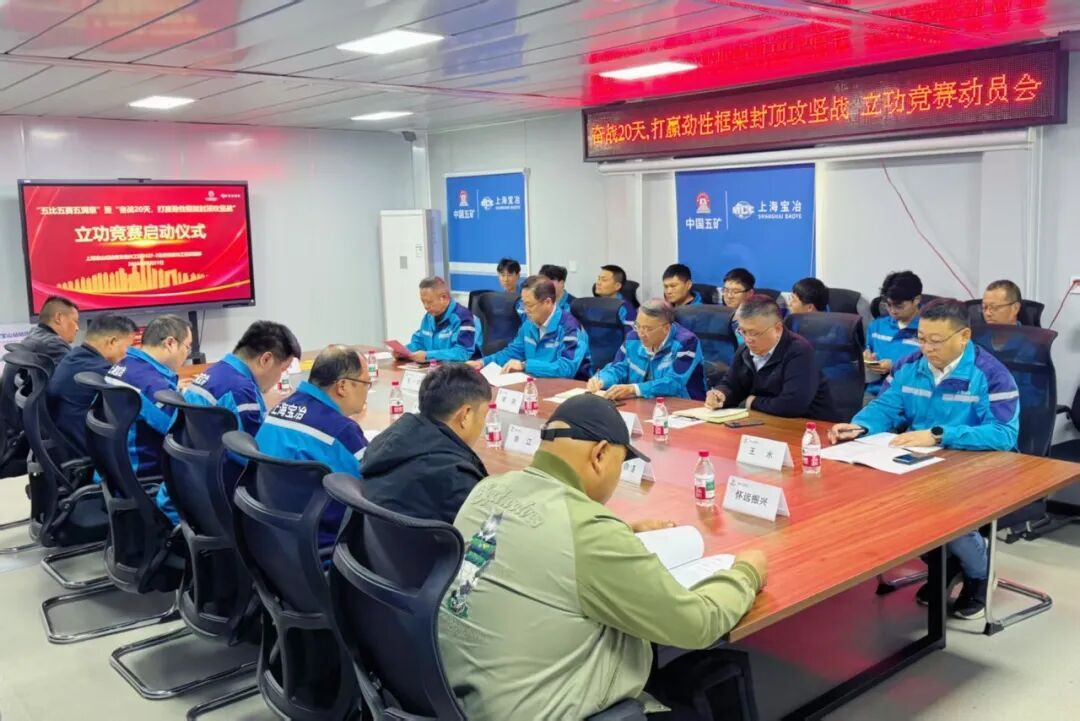 4月21日下午,宝冶钢构上海宝山站站房钢结构工程项目部组织召开“奋战20天,打赢劲性框架结构封顶攻坚战”立功竞赛动员会,以党建引领生产攻坚,以竞赛激发奋进力量,确保“5.10劲性框架封顶”。上海宝冶工会主席阳刚,上海宝山站站房Ⅱ标项目部项目经理丁海涛,宝冶钢构党委副书记、纪委书记、工会主席毛一新出席会议。