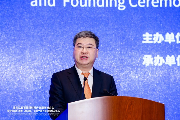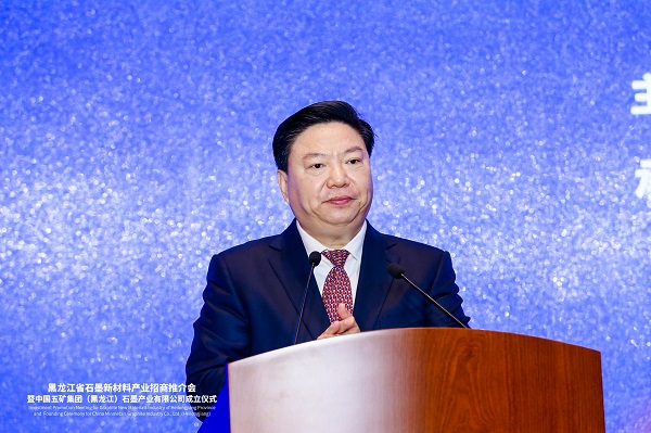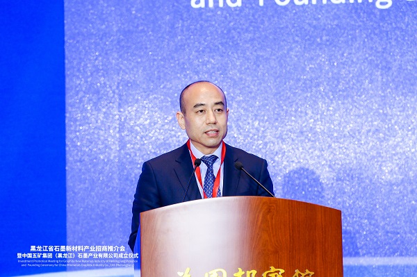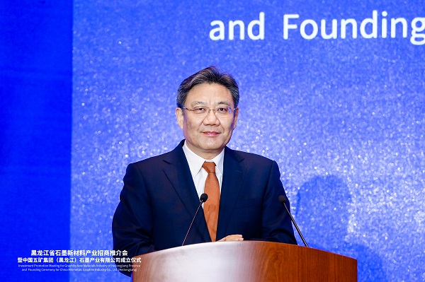 王文涛在致辞中对中国五矿集团(黑龙江)石墨产业有限公司的成立表示热烈祝贺,介绍了黑龙江石墨新材料产业发展有关情况。王文涛表示,黑龙江石墨资源量位居全国首位,具备发展石墨新材料的产业优势。近年来,黑龙江省政府出台了一系列石墨产业科技发展专项规划,制定了石墨烯产业三年行动计划,把石墨新材料产业发展作为新兴产业的主攻方向,加大对优势企业支持力度,把资源要素向有实力企业倾斜,培育壮大龙头骨干企业,强化石墨园区项目承载和要素集聚功能,推动集群式、一体化发展。当前,黑龙江正在围绕工业强省目标,加快推动探采加一体化,全力打造创新驱动引领的石墨新材料产业链,加快把石墨新材料产业培育成千亿级产业。黑龙江省政府将不断优化营商环境,为企业提供从项目谋划到落实落地的优质服务,真诚希望与会嘉宾和社会各界把握机遇、找准商机、共赢未来。