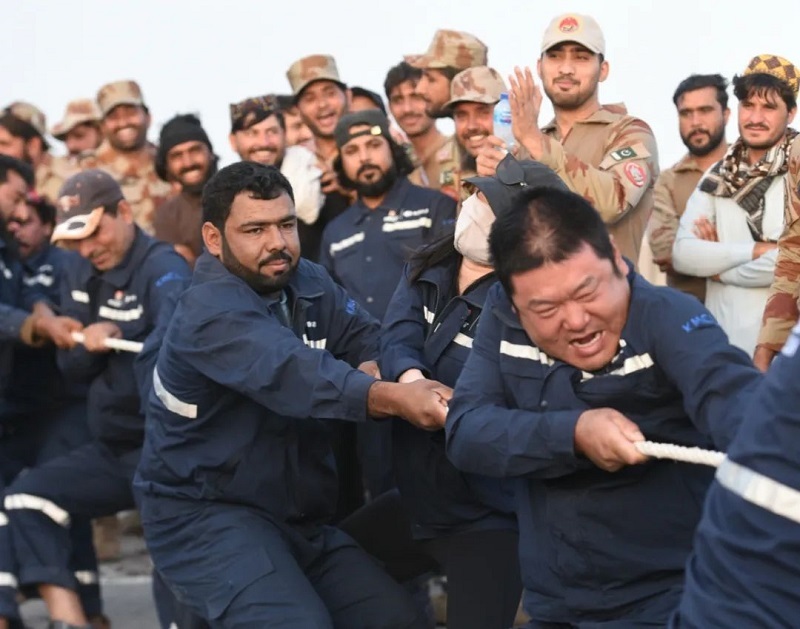 作为“3+1”系列活动的开篇,本次拔河比赛吸引了来自科伊矿业各部门、巴基斯坦边防军及合作单位的9支队伍踊跃参与。各队均采取中巴员工混合组队形式,充分体现了跨文化协作精神。赛场上,队员们紧握绳索,或弓步下蹲、重心后移,或齐心协力、步调一致,展现出顽强的意志和强大的团队凝聚力。现场气氛非常热烈,助威声浪迭起。经过多轮激烈角逐,科伊矿业代表队最终拔得头筹,边防军代表队与项目合作单位代表队分获第二、三名。这场较量不仅是对体能的检验,更是友谊的升华,为中巴员工搭建了深度交流、增进理解与情感融合的桥梁。