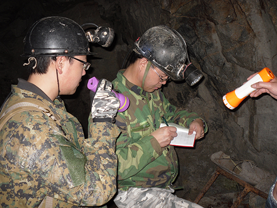 勘查项目管理是公司核心工作之一,为了使项目管理到位,张成学与项目组技术人员长期驻守矿区,密切跟踪项目进展中的每一环节。在粤西大金山项目开展之初,张成学带领项目组技术人员与施工单位同吃同住,紧密联系,及时沟通,对项目进展中发现的技术、质量、安全问题及时纠正和解决,这些问题小到岩性矿物定名、岩心编录,大到钻孔设计和施工质量管理,尤其是在技术细节方面,督促施工单位按规范、设计执行和完成,从而提高勘查工作质量。