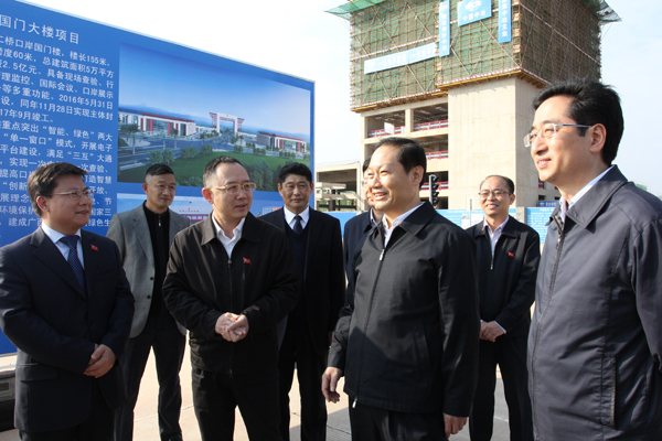 2月9日,广西壮族自治区党委书记彭清华一行到中国十七冶集团承建的广西东兴国家重点开发开放试验区国门楼项目调研指导工作。