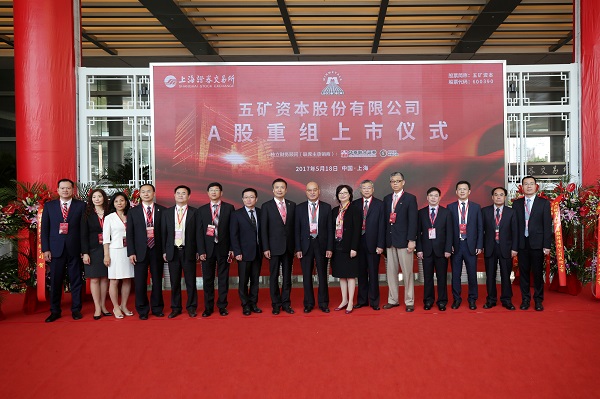 5月18日,五矿资本股份有限公司(公司简称:五矿资本,股票代码600390)A股重组上市仪式在上海证券交易所隆重举行。中国五矿董事长、党组书记何文波,上交所监事长潘学先、副总经理谢玮,中国东方资产管理股份有限公司监事长李欣,工银安盛人寿保险有限公司董事长孙持平,中国国际金融股份有限公司监事长韩巍强,华泰联合证券有限责任公司副总裁宁敖,五矿资本董事长任珠峰,董事薛飞、莫春雷,独立董事单飞跃、李明,监事会主席潘中艺,监事赵晓红、吕静,各中介机构、重要合作方及客户企业领导,五矿资本员工代表等180余人出席重组上市仪式,共同见证了这一历史性时刻。