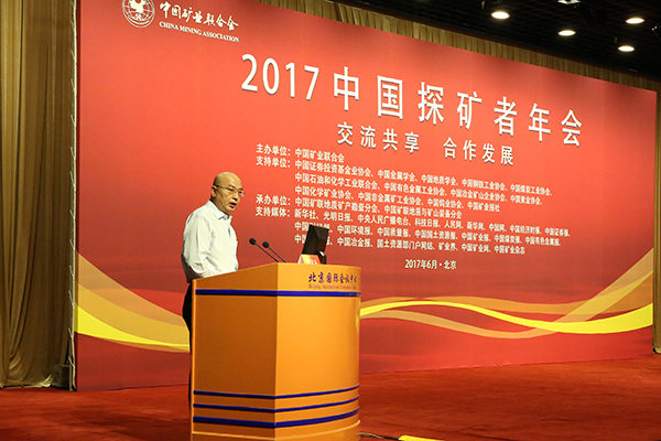 6月20日至21日,由中国矿业联合会主办的2017中国探矿者年会在京召开,本届大会主题是“交流共享,合作发展”。国土资源部原总工程师、中国矿业联合会长、党委书记彭齐鸣主持会议并代表主办单位致欢迎词,国土资源部副部长凌月明,全国政协委员、中国工程院院士、中国工程院原副院长干勇,中国冶金地质总局局长、党委书记、中国矿业联合会地质矿产勘查分会执行会长卢进分别致辞。中国五矿集团公司董事长、党组书记何文波应邀出席会议,并作“中国矿业企业面临的机遇与挑战”主旨演讲。