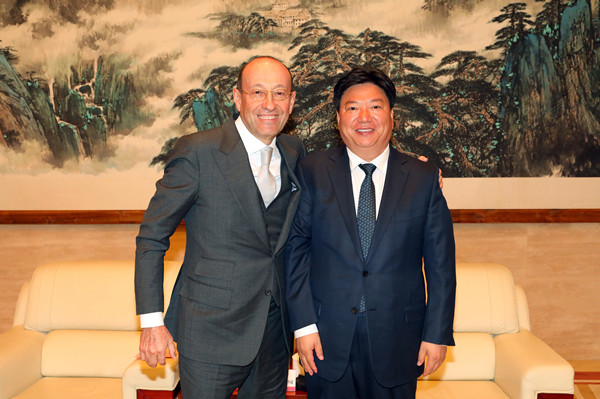 3月28日,中国五矿集团有限公司总经理、中冶集团董事长国文清会见了来访的欧亚资源集团董事长亚历山大·马什科维奇一行,双方就进一步加强合作进行了深入交流。