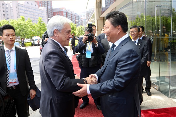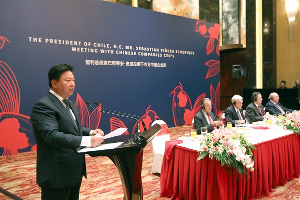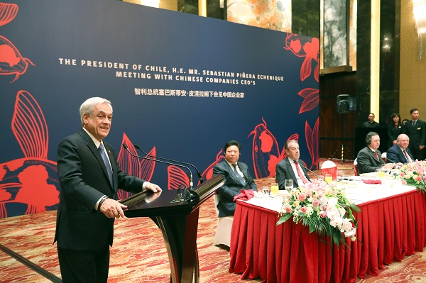 塞巴斯蒂安·皮涅拉在致辞中表示,中国是当今世界最重要的经济体之一,是智利最大的贸易伙伴,智中两国距离虽远但有着深厚的友谊和良好的合作历程,智中建交50年来,两国关系取得了长足发展。智利拥有非常丰富的矿产资源、森林资源和渔业资源,具有稳定的政治环境以及全球化的、自由健康的经济环境。在过去20年中,技术革新给智利诸多领域带来了很大变化,智利已经做好准备迎接第四次工业革命带来的挑战与机遇,在共建“一带一路”的良好契机中,加快促进地区间互联互通。希望借鉴中国创新发展、绿色发展的成功经验,深化和拓展相关合作,同时致力于维护多边主义和多边贸易体系,密切同中方在区域和多边事务中协调合作,继续在拉中关系中发挥示范作用,进一步打开智中两国广阔的合作前景。