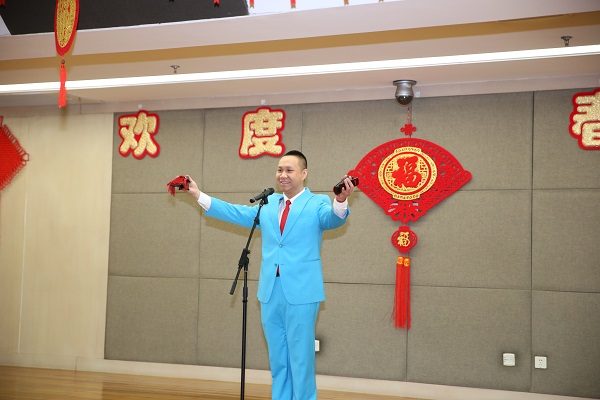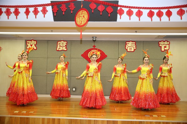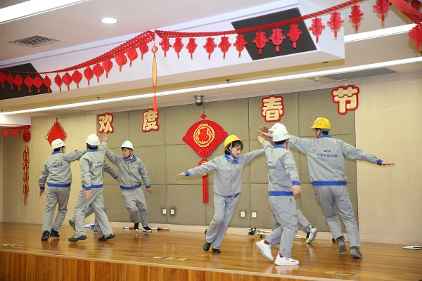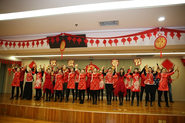 团拜会上,中冶集团领导班子成员集体向全体干部职工鞠躬拜年,祝愿大家新春快乐、工作顺心、生活幸福!集团总部员工和子公司员工还自编自演了舞蹈、合唱、情景剧等文艺表演。在中冶集团领导班子与全体员工齐唱《我和我的祖国》雄壮的歌声中,团拜会落下帷幕。
